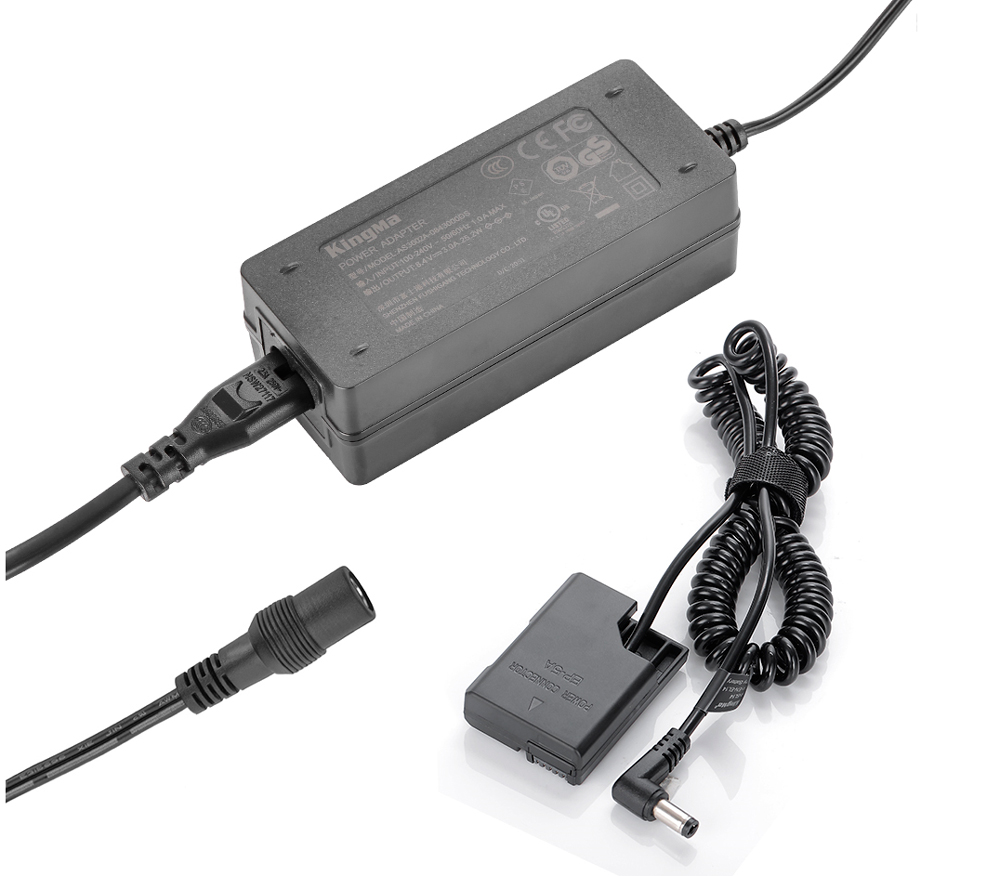 Адаптер питания («каплер») Kingma DR-ENEL14 устанавливается в батарейный отсек камеры вместо аккумулятора вместо аккумуляторов Nikon EN-EL14, EN-EL14a. Затем он подключается к сетевому адаптеру: штекер 5.5х2.1 мм (DC 5521 «папа»). В комплекте идет сетевой адаптер Kingma, каплер также можно использовать с системой питания Tether Tools ONsite Relay, батарейными площадками Kingma, Smallrig и так далее. Использование каплера позволяет снимать фото или видео практически без ограничения по времени, а также снижает нагрев камеры при длительной съемке.