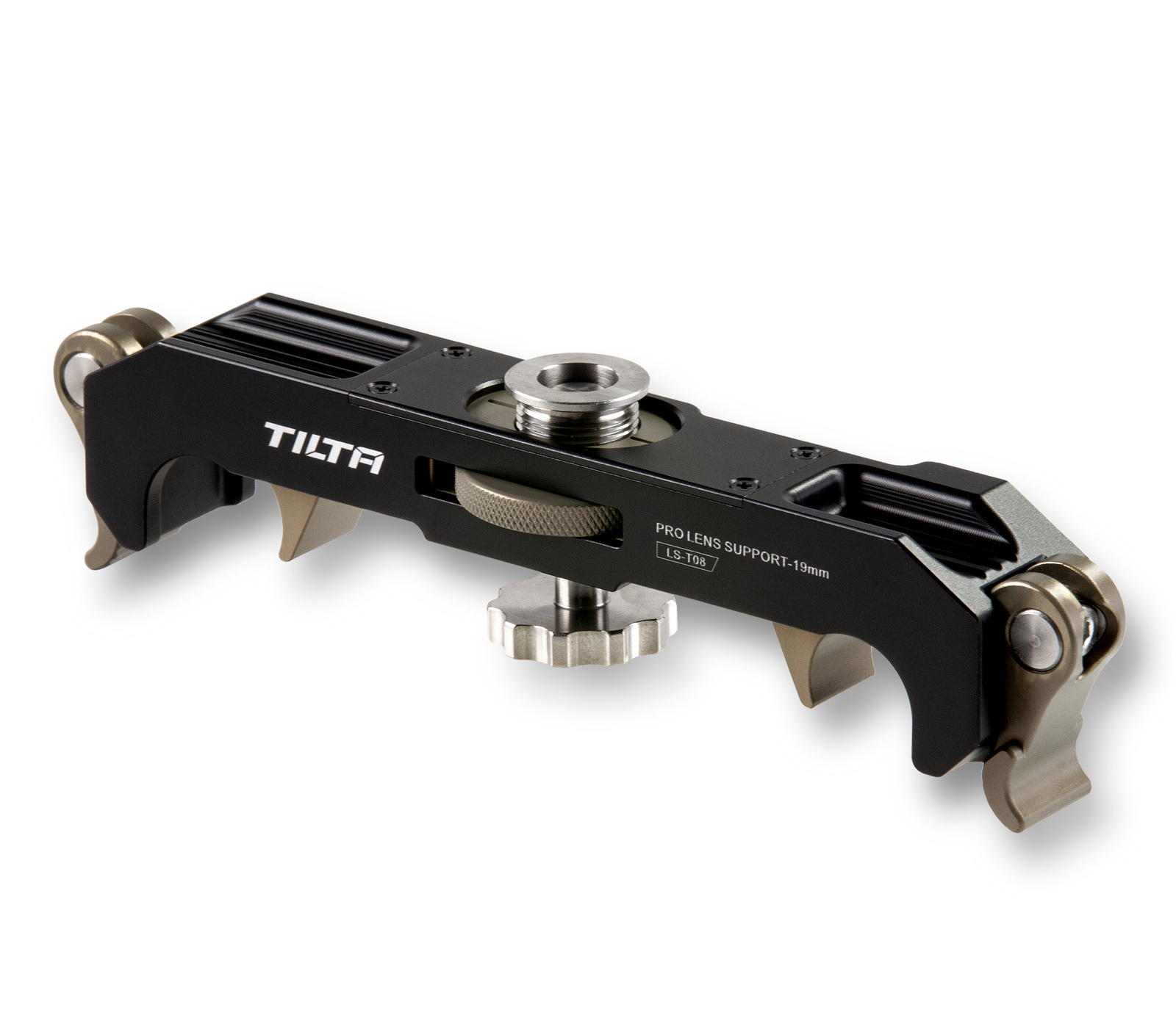 Tilta 19mm Pro Lens Support устанавливается на 19-мм направляющие для поддержки объективов, у которых на корпусе имеется гнездо 3/8"-16 (как правило, такое встречается только у профессиональных кинообъективов), которые могут провисать в байонетном креплении, что вызывает перекос оптической оси относительно фокальной плоскости и, соответственно, ухудшение качества изображения. Также предотвращает вращение объектива при использовании сильных follow focus приводов.