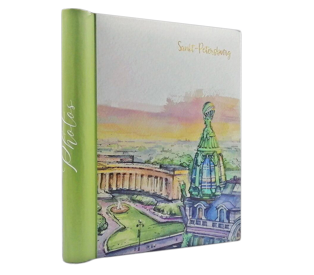 Магнитный альбом для фотографий разных форматов. Также подойдет для размещения рисунков, открыток, билетиков, картинок желаний, вырезок и прочего. Фотографии могут располагаться в произвольном порядке – вертикально, горизонтально или по диагонали. Твердая обложка выполнена из картона, бумажные листы с магнитной пленкой скреплены пластиковой спиралью. На обложке изображена одна из визитных карточек Петербурга: вид на дом Зингера и Казанский собор. Альбом отлично подойдет для фотографий на память о путешествии в Санкт-Петербург.